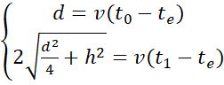 , the arrival time of mode 1, we obtain two equations with two unknowns (